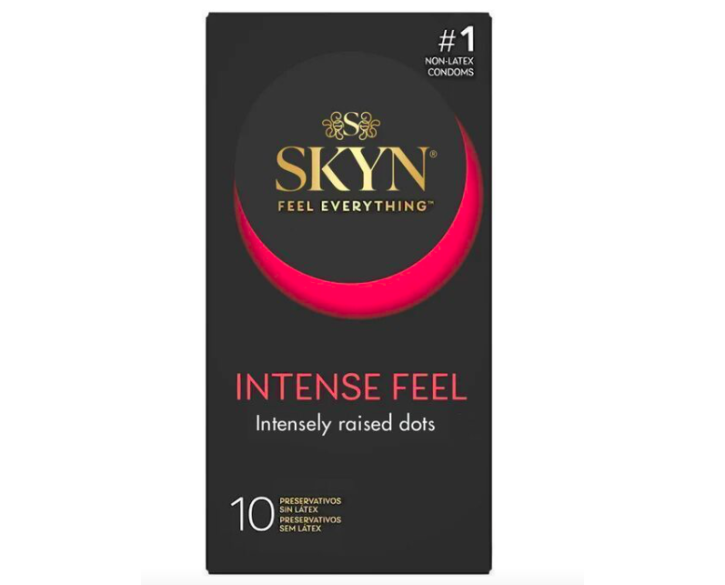 Щоб підсилити відчуття під час близькості, рекомендуємо купити безлатексні преміум-презервативи SKYN Intense Feel — не просто тонкі та ідеально обтислі як друга шкіра, а й з додатковим точковим рельєфом для приємної стимуляції. Презервативи виготовлені з поліізопрену SKYNFEEL® — запатентованого матеріалу, що не містить каучукового латексу. Це чудовий вибір для людей із непереносимістю латексу!