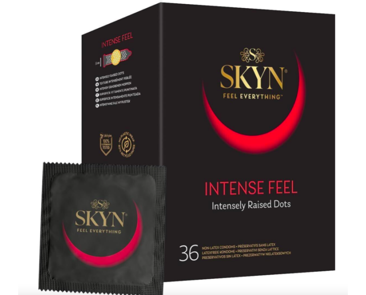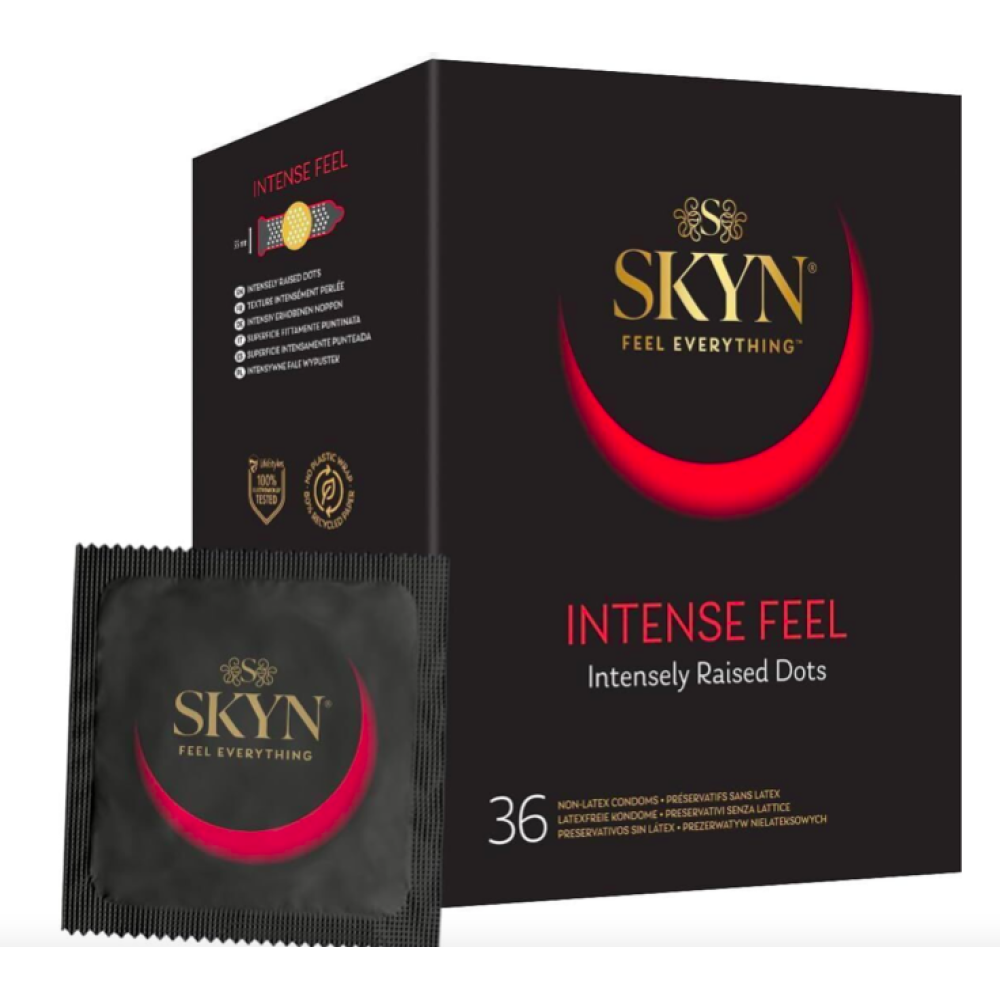 Щоб підсилити відчуття під час близькості, рекомендуємо купити безлатексні преміум-презервативи SKYN Intense Feel — не просто тонкі та ідеально обтислі як друга шкіра, а й з додатковим точковим рельєфом для приємної стимуляції. Презервативи виготовлені з поліізопрену SKYNFEEL® — запатентованого матеріалу, що не містить каучукового латексу. Це чудовий вибір для людей із непереносимістю латексу!