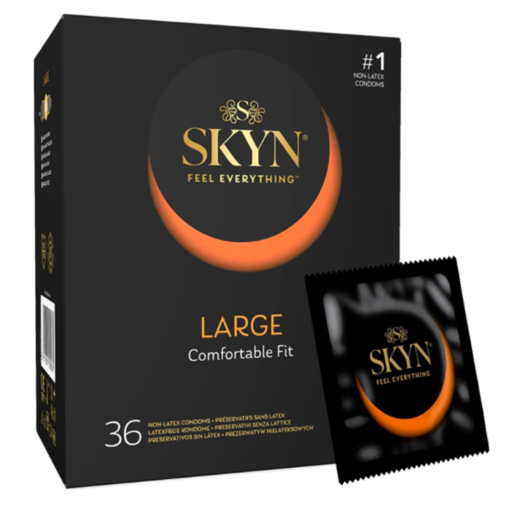 Безлатексні презервативи SKYN Large виготовлені з революційного матеріалу SKYNFEEL® — ідеально м’якого та тонкого, який щільно прилягає до тіла, та не заважають відчути все повною мірою.