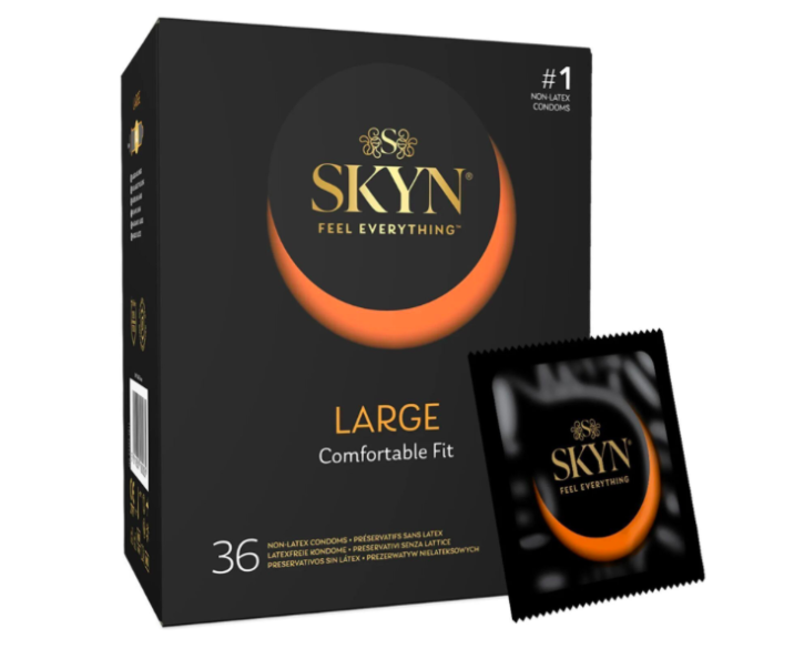 Довші, ширші і все такі ж тонкі та комфортні! Якщо вам потрібен розмір побільше, рекомендуємо купити безлатексні презервативи SKYN Large. Вони виготовлені із запатентованого матеріалу SKYNFEEL®, який не містить латексу — ідеально для людей, які не можуть або не хочуть використовувати латексні презервативи! SKYN Large дуже добре розтягуються та підходять для розмірів більше середнього.