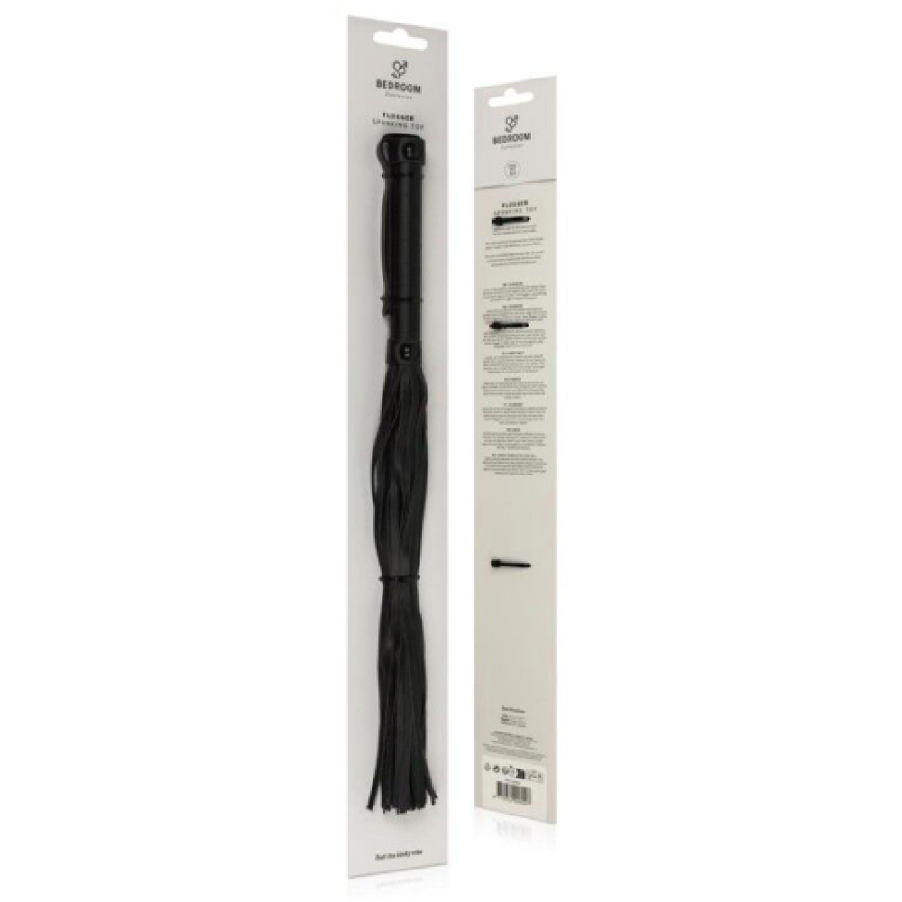 Флогер виконаний із веган-френдлі штучної шкіри. Обплетена смужками шкіри, жорстка ручка добре лежить у долоні. Петля на кінці, що призначена для фіксації на зап’ястя, не дасть флогеру вилетіти з руки за інтенсивного використання. Довгі кінці хвоста флогера можуть ніжно торкатися шкіри, дражнячи й розпалюючи пристрасть, а можуть стати справжнім випробуванням для партнера, адже удари флогером можуть бути достатньо чутливими.