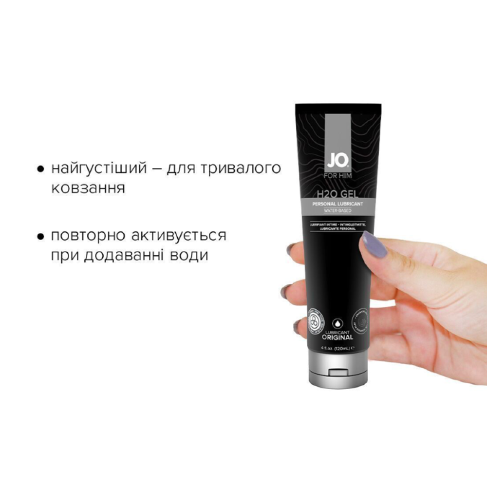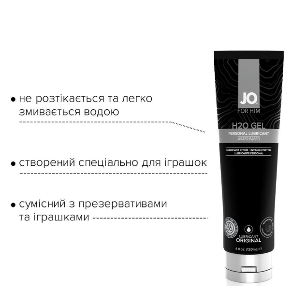 JO® H2O GEL ДЛЯ ЧОЛОВІКІВ — це інтимний лубрикант на водній основі, призначений для зволоження та підвищення сексуальної активності, особливо добре підходить для мастурбації. JO® H2O GEL ДЛЯ ЧОЛОВІКІВ виготовлений із використанням гліцерину виключно рослинного походження й має особливу густу консистенцію, що дарує абсолютно нові відчуття. Завдяки особливій гелеподібній текстурі лубрикант не розтікається, а залишається саме там, куди ви його нанесли, забезпечуючи тривале ковзання без липкості. Його формула розроблена спеціально для сексуальних іграшок, сумісна з багатьма матеріалами та легко змивається.