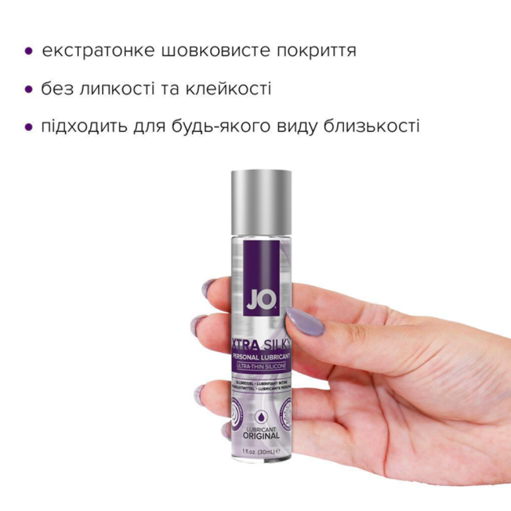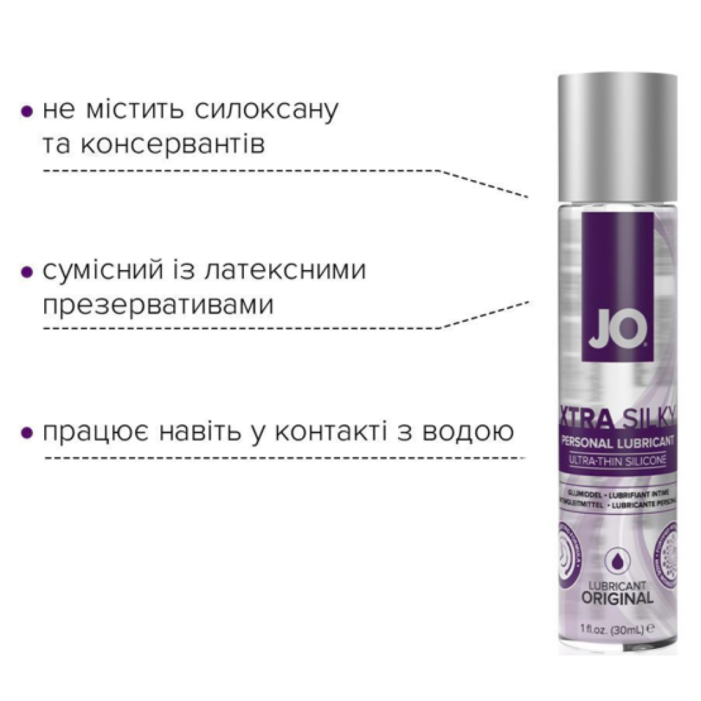 Цей лубрикант спеціально розроблений для того, щоб зробити інтимну близькість максимально комфортною й доповнити природну змазку. JO Xtra Silky Silicone створений на основі високоякісного силікону та збагачений вітаміном Е. Це ультраковзна змазка для довгого задоволення та додаткового зволоження.