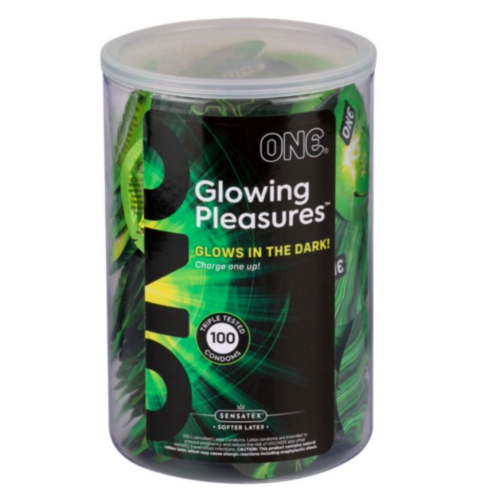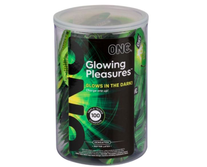 Пропонуємо купити набір презервативів ONE Glowing Pleasures — вони забезпечать вам не тільки максимально природне задоволення від інтиму, але й перетворять процес на незабутнє видовище. Особливість цих презервативів — здатність м’яко світитися в темряві завдяки особливому нетоксичному пігменту. Люмінесцентна речовина «запаяна» у внутрішньому шарі презерватива, тому не зітреться під час використання. Презервативи упаковані в прозорий пластиковий тубус із яскравою жовто-зеленою наліпкою: у пакованні ви знайдете 100 штук.