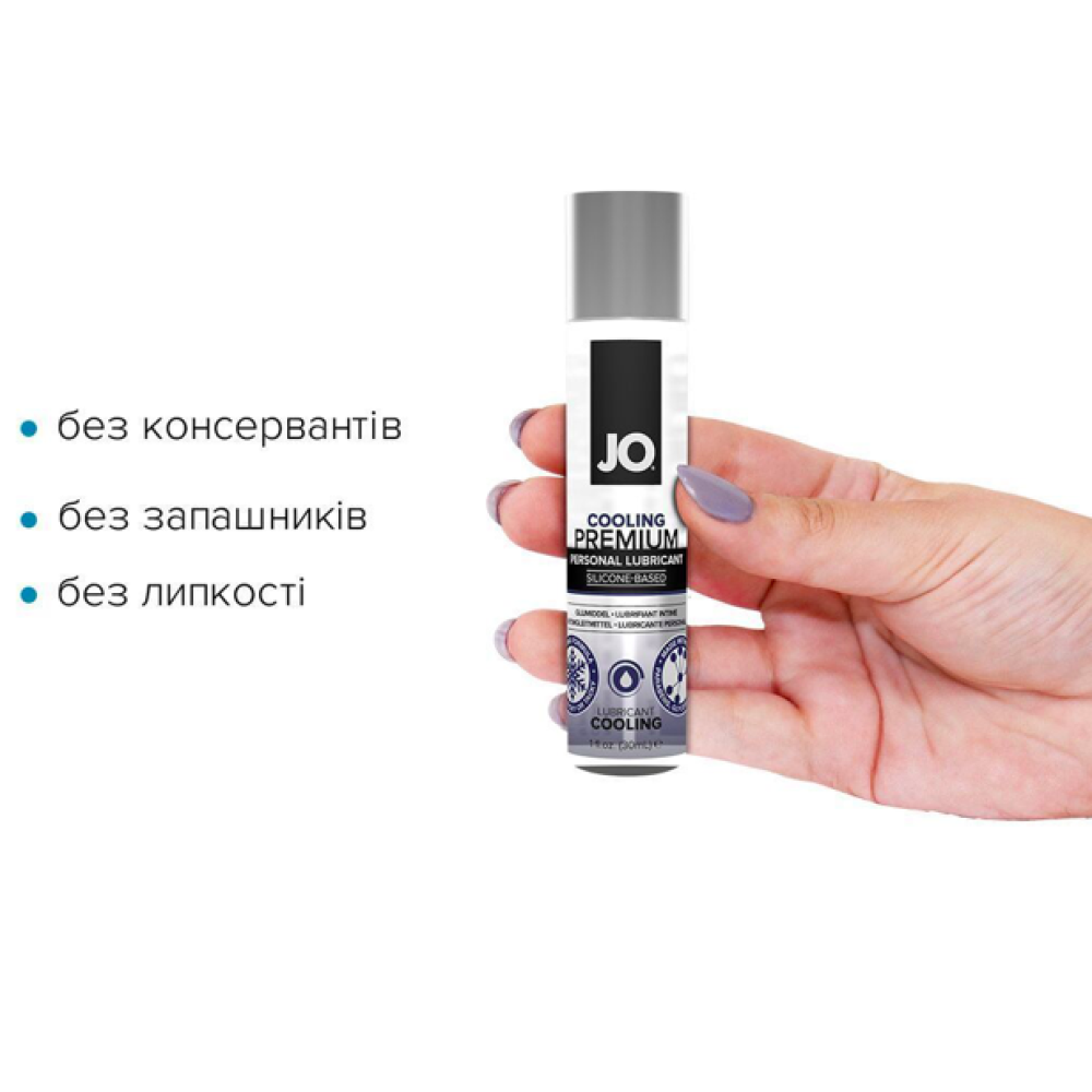 JO® PREMIUM — це інтимний лубрикант з охолоджувальним ефектом на основі силікону, що використовується як доповнення до природної змазки для отримання більшого задоволення від інтимної близькості. Забезпечує довге ніжне оліїсте ковзання, водостійкий, ідеально підходить для пестощів у нестандартних умовах. JO® PREMIUM не містить консервантів і виготовлений із використанням силікону лише найвищої якості.