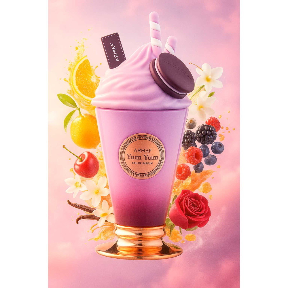 Yum Yum — це маленька подорож у світ фантазій і веселощів. Натхненням став казковий молочний коктейль із шапкою вершків, паличками та шоколадним макароном, який передає атмосферу солодких насолод і яскравих емоцій. Аромат створений для жінок, які люблять солодке, але цінують вишуканість і прагнуть підкреслити свою індивідуальність.