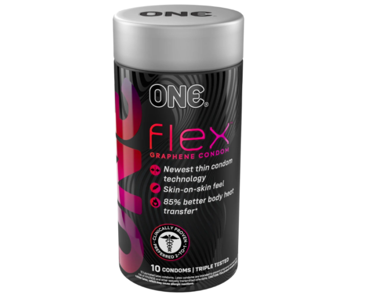 Презервативи ONE Flex Graphene — перші у світі засоби захисту, у яких м’який латекс Sensatex на молекулярному рівні зв’язаний із найтоншою плівкою графену. Цей матеріал у мільйон разів тонший за людське волосся, за міцністю у 200 разів перевищує сталь, а тепло тіла передає на 85 % краще, ніж звичні латексні презервативи.