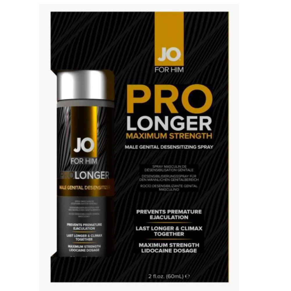 Пролонгувальний спрей JO Prolonger Spray (60 мл) — інтимний спрей-пролонгатор допоможе уповільнити настання еякуляції, що збільшить вашу стійкість у ліжку. Швидкодійний спрей моментально всотується та легкий у використанні. Тривала близькість та спільний оргазм. Лідокаїн знижує чутливість нервових закінчень та допомагає уповільнити настання еякуляції. Нанесіть за деякий час до близькості, щоб засіб встиг всотатися. Звертаємо вашу увагу, що засіб не призначений для орального використання.