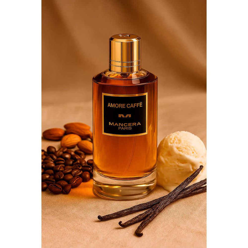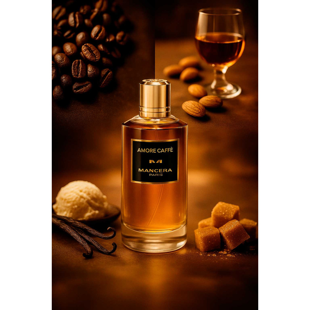 Французький дім Mancera представив Amore Caffè у 2023 році як оду італійському мистецтву задоволення. Аромат натхненний атмосферою кав’ярень, де запах свіжозвареної кави переплітається з солодкістю десертів, а кожен ковток і вдих — це маленьке свято життя.