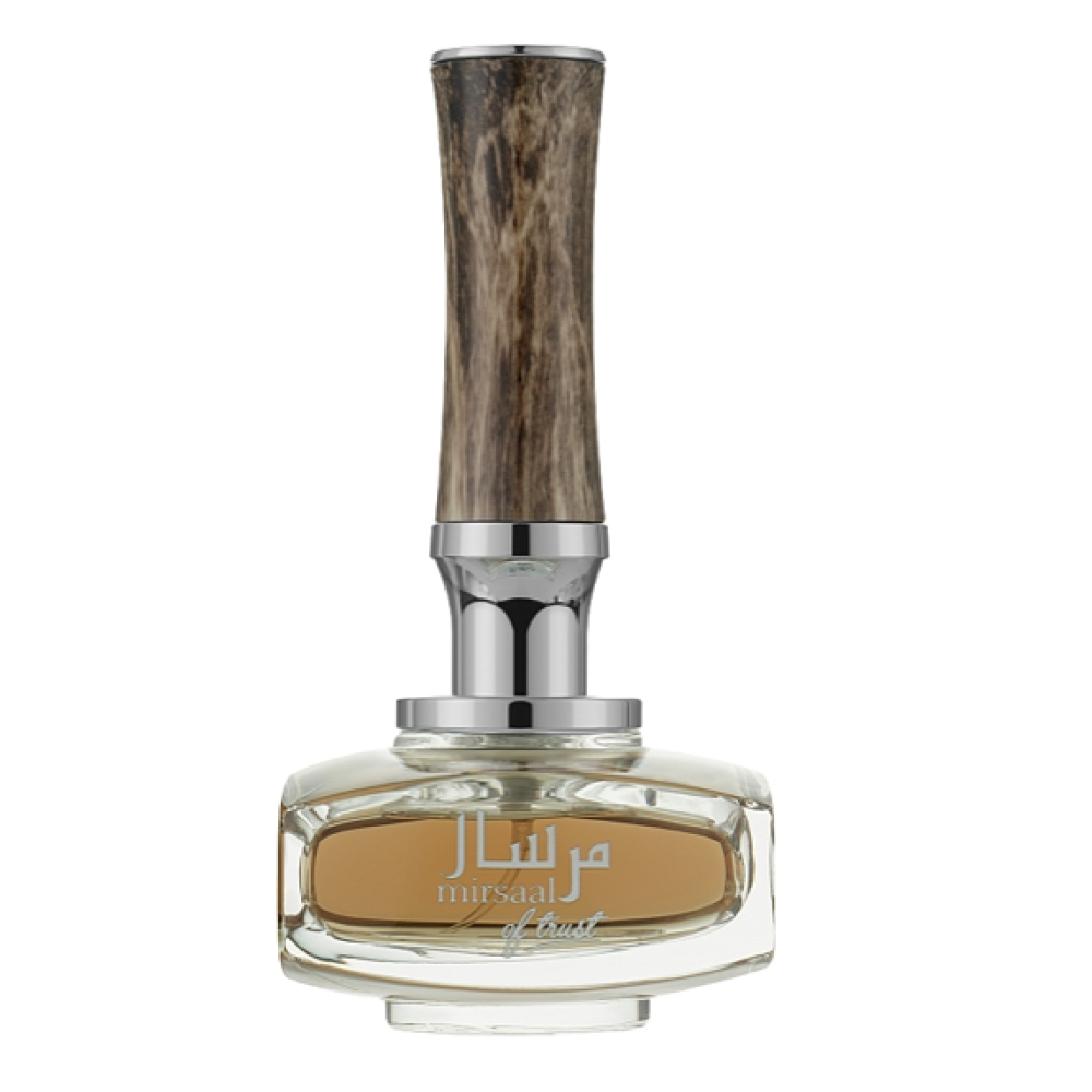 Густий шкіряно-деревний аромат Afnan Perfumes Mirsaal Of Trust є класичним прикладом розкішної арабської парфумерії. Вона вирізняється своїм особливим звучанням із більшою насиченістю і глибиною, унікальними пряними нотами і шлейфом, що утворює магнетизм. Композиція Afnan Perfumes Mirsaal Of Trust належить до ароматів для чоловіків і жінок. Вона виготовлена у дивовижному флаконі з дерев'яною кришкою, що прагне вгору.