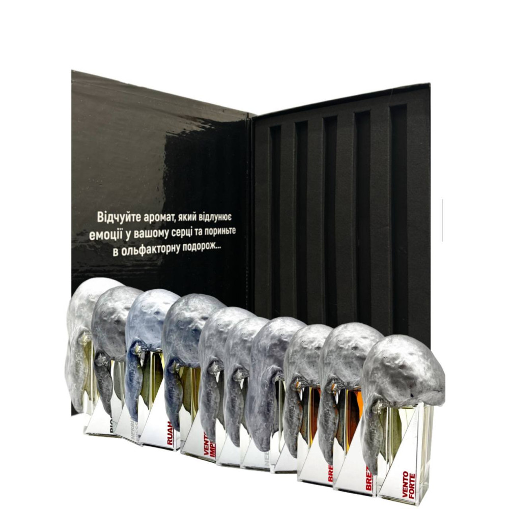 У наборі зібрані всі ключові аромати лінійки — від ніжного дощу до густого туману й шаленого вітру.