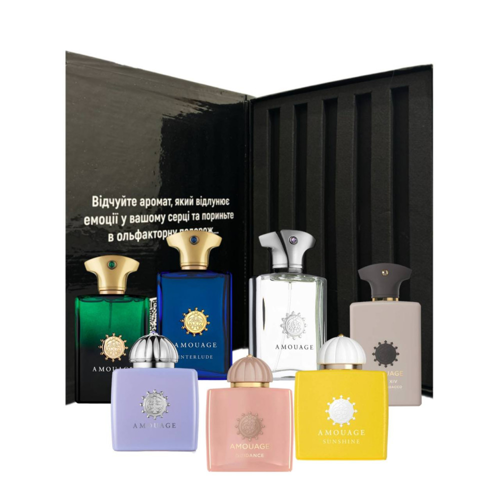 Сет дозволяє оцінити всю багатогранність Amouage — від свіжих і легких до темних і драматичних ароматів, обрати свій улюблений та насолодитися нішевою розкішшю.