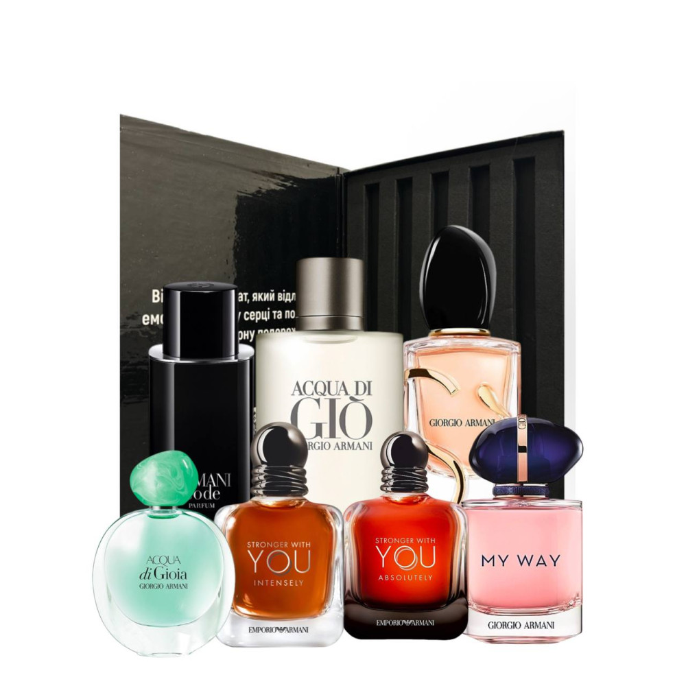 Armani — це про елегантність, мінімалізм і впевненість у собі. Цей сет зібрав найвідоміші та найулюбленіші аромати бренду, щоб ви могли відчути їхню гармонію й стиль.