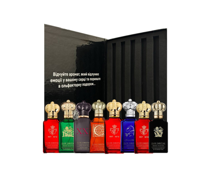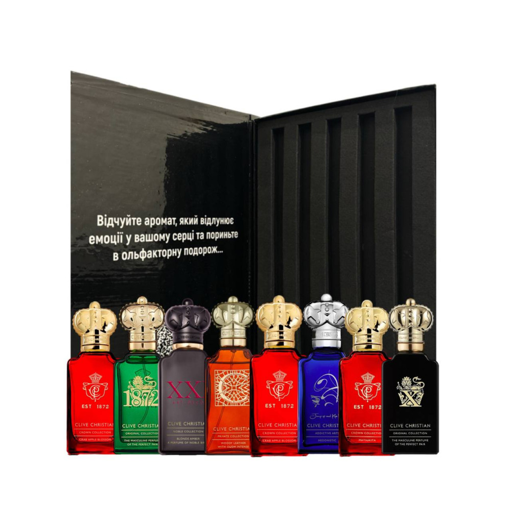 Добірка для тих, хто обирає тільки найвищу якість, складність та справжній люкс. Clive Christian — це бренд із безкомпромісною елегантністю, де кожен аромат звучить статусно, дорого та абсолютно унікально. Цей сет — про силу, характер і витонченість, які неможливо сплутати.