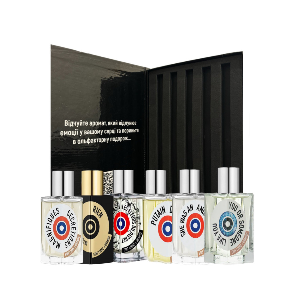 Etat Libre d’Orange — це сміливість, іронія та мистецтво провокації у флаконі. Цей сет зібрав найвідоміші аромати бренду — незвичні, експресивні, створені для тих, хто не боїться бути собою.