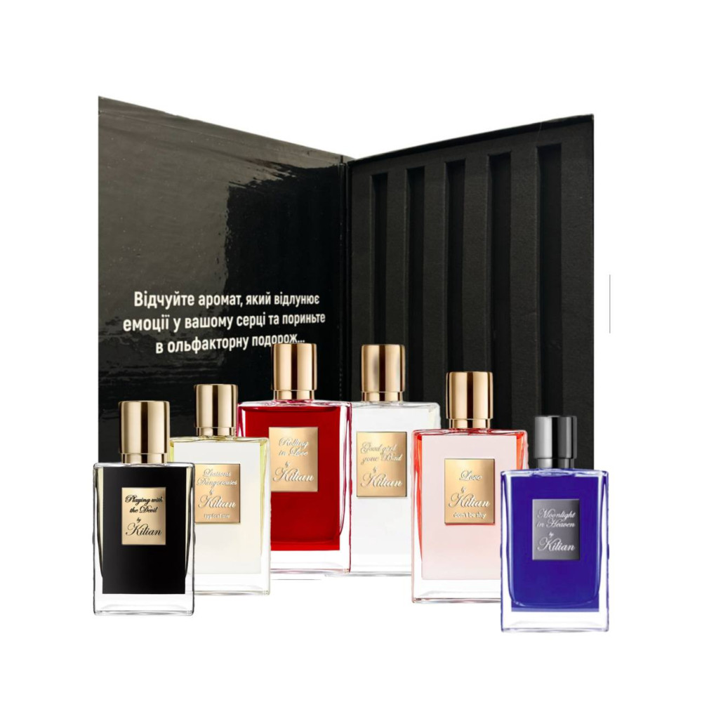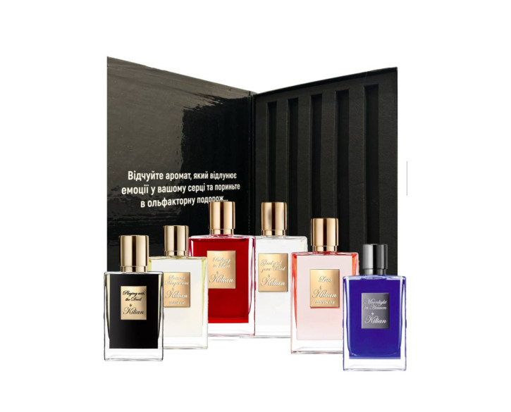 Цей сет — про жіночність у всіх її проявах: примхливість, спокуса, ніжність, свобода, емоції та настрій, який змінюється так само красиво, як акорди у флаконі Kilian. Шість ароматів, кожен зі своїм характером — від солодкої невинності до справжнього шаленства. Це ідеальний спосіб спробувати найулюбленіші жіночі композиції бренду, які давно стали культовими.