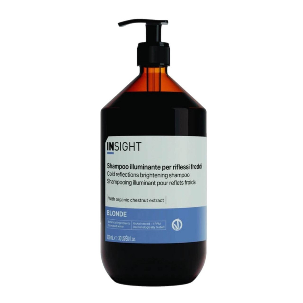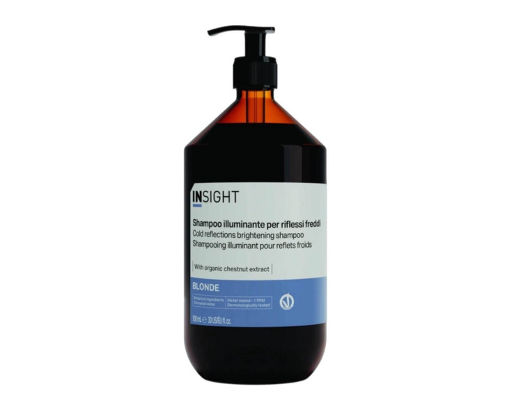 Insight Blonde Cold Reflections Shampoo — це професійний шампунь для світлого, освітленого та сивого волосся, створений для підтримки чистого холодного відтінку без небажаної жовтизни. Засіб делікатно очищає волосся та шкіру голови, одночасно тонізуючи колір і надаючи йому більш холодного, благородного звучання.