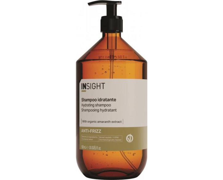 Шампунь зволожувальний для всіх типів волосся Insight Anti-Frizz 900 мл — це легкий дорожній варіант для м’якого очищення і зменшення пухнастості волосся.