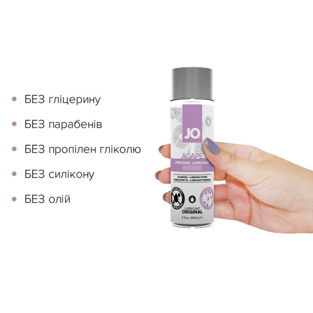 Змазка на водній основі JO AGAPE — ORIGINAL — це інтимний лубрикант, створений задля імітування природної жіночої змазки. Ця нова та вдосконалена формула на водній основі не містить гліцерину, гліколю та парабенів; ідеально підходить для людей, які керуються складом засобу під час його купівлі. Плюс до всього неймовірно легка консистенція забезпечує ніжне ковзання, таке ж гладеньке як шовк. Ви маєте спробувати цей засіб!