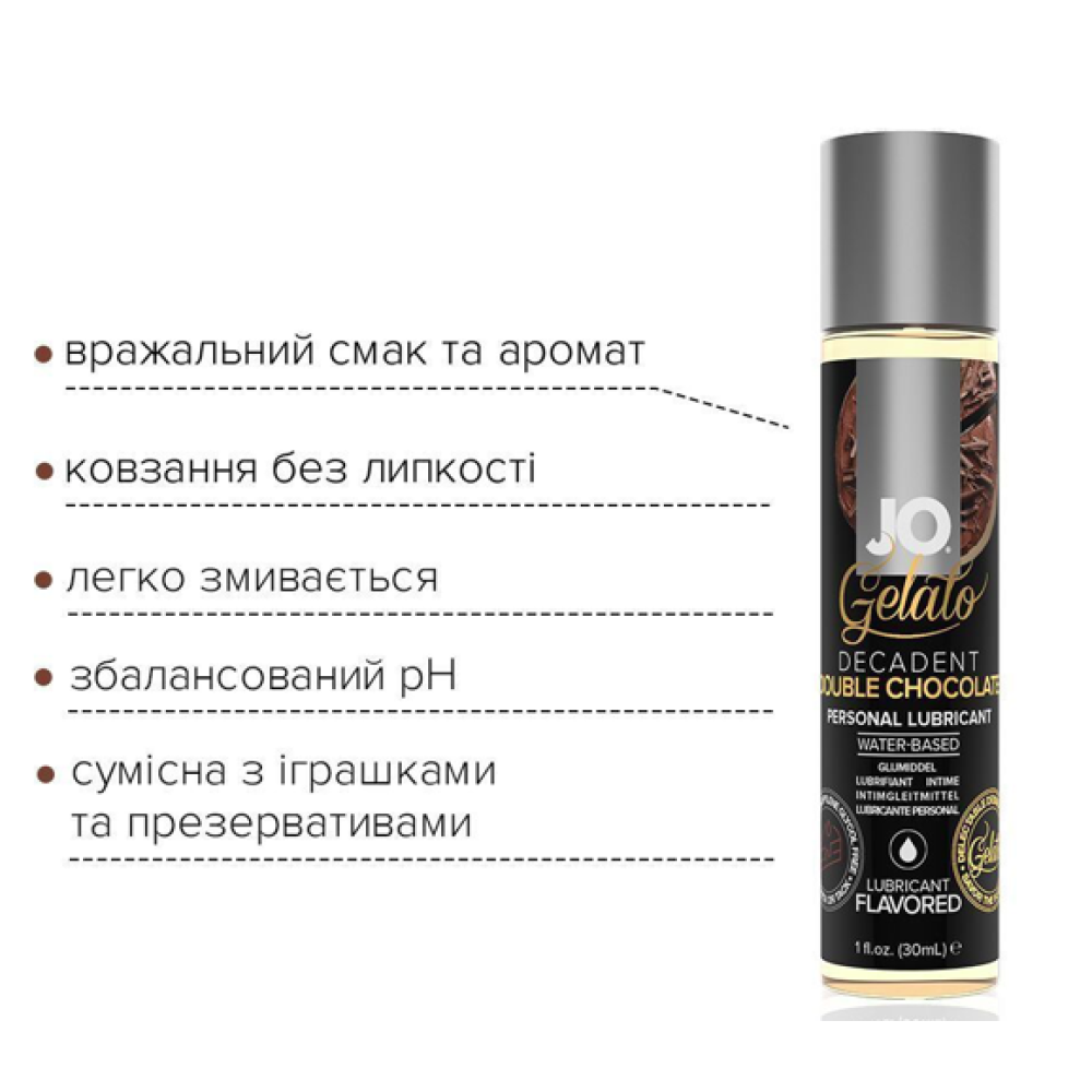 Пропонуємо купити лубрикант на водній основі JO GELATO Double Chocolate — довготривалий, не липкий та смачний. Завдяки безпечній формулі без цукру та парабенів на основі рослинного гліцерину продукт забезпечує довге ковзання та насичений шоколадний смак. Без хімічного смаку. Чудовий варіант для оральних пестощів, проникного сексу та ігор із девайсами!