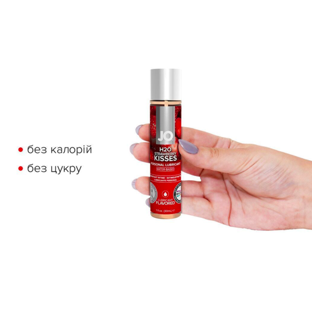 Лубрикант на водній основі JO H2O — STRAWBERRY KISS робить прелюдії більш приємними й поліпшує якість інтимної близькості. Виготовлений із використанням гліцерину виключно рослинного походження та натуральних ароматизаторів.